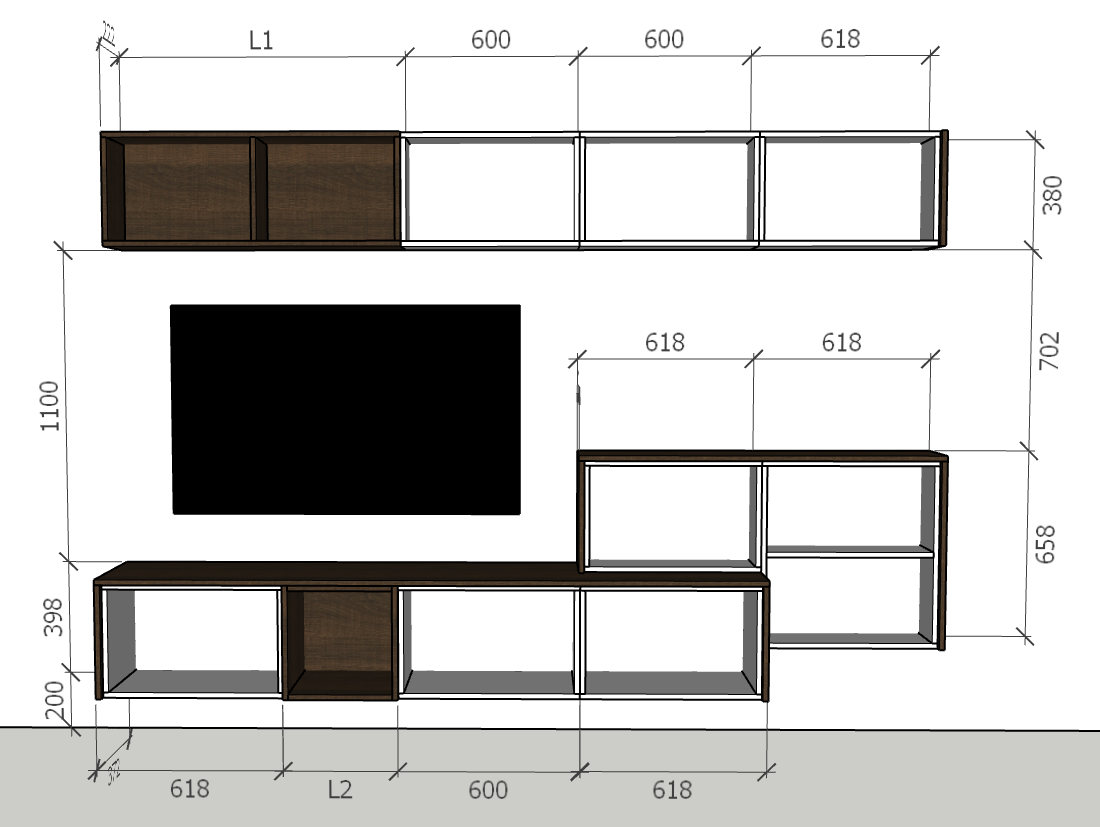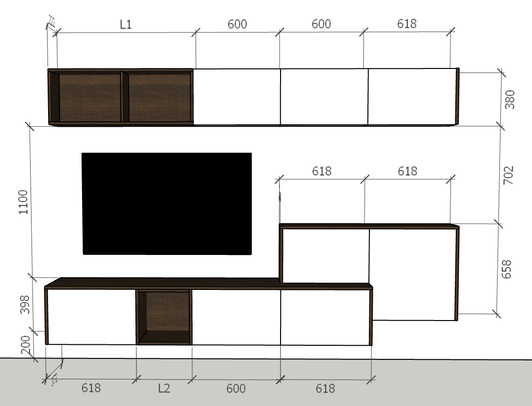 Tủ Tivi treo 640, thùng - 600X200X640 Mã: TTV602064T