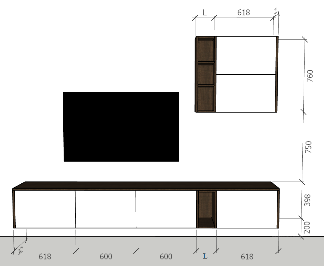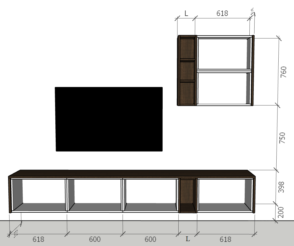 Tủ Tivi treo 380, thùng - 600X200X380 Mã: TTV602038T